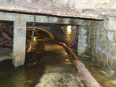 L'ouvrage de 430 mètres de longueur, recouvre le ruisseau La Burge dans sa traversée de Bourbon, entre le moulin du château et le pont Cachet. Il a été créé par la commune, en trois tranches, entre 1898 et 1912. La visite "technoristique" dure deux heures et est limitée à 15 personnes. Un casque, dont le port est obligatoire, est fourni au départ à la Maison de Pays. Des chaussures de marche ou de bottes sont fortement conseillées. L’ouvrage est L’ouvrage est éclairé sur toute sa longueur.