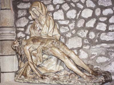 A l’intérieur de l’église, une vierge assise en bois doré, au milieu d’un grand retable du XVIIème siècle. Sur la porte ouest de la cathédrale, à l’extérieur, dans une niche, se tient une vierge noire. D’où vient-elle ? Aucune information quand à sa provenance, ni si c’est une copie récente. Il semble qu’elle soit la copie d’une autre vierge noire connue…
