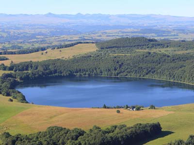 Le Lac Chauvet 'lieu chauve et déboisé' occupe un cratère de maar basaltique (-15000 ans), il est en partie comblé par des moraines glaciaires. Il demeure une énigme pour le géologue car les produits d'explosion du cratère n'ont pas été retrouvés. Ce lac situé à 1166m d'altitude est pratiquement circulaire, sa superficie est de 52 ha, sa profondeur de 63 m son diamètre de 600 m. .Le lac était autrefois enfermé dans l'épaisse ceinture que formaient autour de lui le Bois Noir et le Bois de Montbert, suite au déboisement le cirque est maintenant ouvert sur près de la moitié de sa circonférence. Le lac est bordé de fayards (arbre pouvant atteindre 200 ans). Le Lac est facilement accessible en empruntant la D203 qui passe à quelques 500 mètres et la signalisation qui indique sa présence. Il suffit de suivre le chemin qui conduit au bord de l’eau. Le lac Chauvet est à 5 kilomètres environs à vol d’oiseau du lac de Montcineyre et à près de 12 kilomètres de Besse.