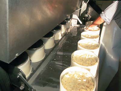 La tomme est mise en moule, puis pressée...