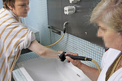 La douche générale au jet L'eau thermale agit au niveau des lésions de la peau par imprégnation superficielle de ses agents actifs et par nettoyage cutané.
